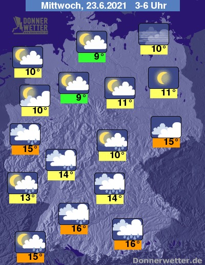 In der folgenden Nacht zeigt sich der Himmel über dem Norden oft gering bis locker, sonst aufgelockert bewölkt, dazu bleibt es trocken. Weiter nach Süden hin herrscht meist starke Bewölkung vor, hier und da zeigen sich auch Auflockerungen, allerdings sind regional Schauer möglich. Die Temperatur sinkt auf 16 Grad in Stuttgart und bis 9 Grad in Hamburg.