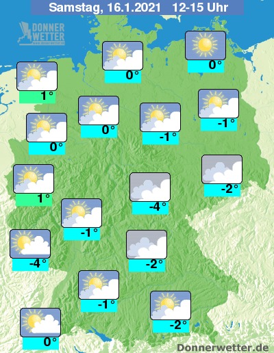 Heute Nachmittag bleibt es im Land größtenteils trüb oder stark bewölkt, hier und da  zeigen sich aber auch Auflockerungen. Vor allem im Norden ist es gebietsweise sogar sonnig. Im Südosten und über Sachsen fällt hingegen regional etwas Schnee, sonst bleibt es trocken. Die Temperatur steigt auf -4 Grad im Thüringer Becken und bis 1 Grad an der Nordsee.