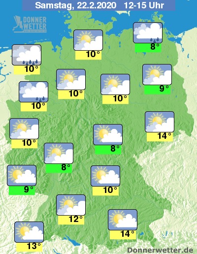 Heute Nachmittag bleibt es über der Nordhälfe Deutschlands meist bedeckt und es fällt auch zeitweise Regen. Dagegen ist es im Süden teils stark, teils auch nur locker bewölkt und dazu trocken. Die Temperatur liegt bei 8 Grad in Rostock und etwa 14 Grad in Augsburg. Über der Nordhälfte des Landes weht ein teils stürmischer Wind. An den Küsten herrscht zum Teil Sturm.