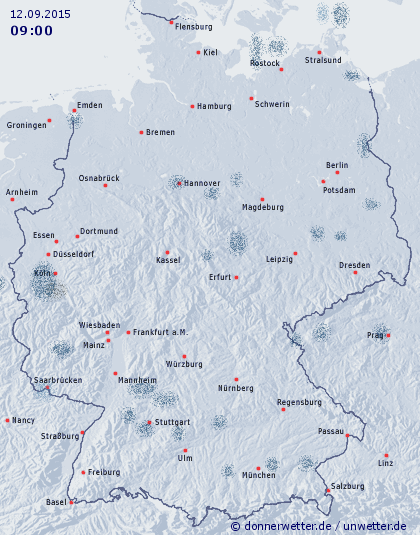 Erste schwache Schauer ziehen über Deutschland hinweg. Im Regenscanner können Sie bis zu 3 Stunden im Voraus die Regenentwicklung verfolgen.