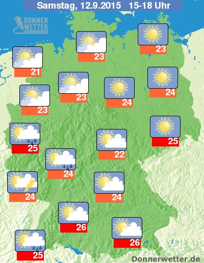 Heute Nachmittag ist es besonders im Osten und Nordosten verbreitet sonnig und trocken. In den westlichen Landesteilen ziehen hingegen schon oft dichtere und auch kompakte Wolken durch, die Bewölkung nimmt hier noch weiter zu und nachfolgend sind hier Schauer und auch Gewitter möglich. Im großen Rest des Landes ist es hingegen meist heiter bis aufgelockert bewölkt, dabei bleibt es trocken. Die Temperatur steigt auf 21 Grad in Wilhelmshaven und bis 26 Grad im Oberrheingraben.