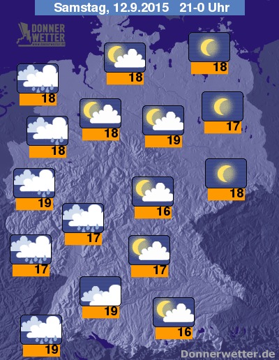 Heute Abend bleibt es über der Osthälfte von Deutschland noch weitgehend locker bewölkt, in den östlichsten Landesteilen auch verbreitet sternenklar. Stattdessen ziehen von Westen her kompakte Wolken in die Westhälfte, dabei fällt zeitweise und zum Teil auch längeranhaltender Regen. Die Abendtemperatur liegt bei 19 Grad in Karlsruhe und etwa 16 Grad im Eichsfeld.
