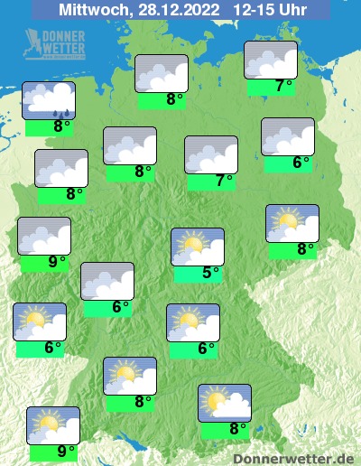 Heute Nachmittag scheint im Süden und Osten hier und da die Sonne, im übrigen Land bleibt es bei verbreitet starker bis dichter Bewölkung. Im Norden fällt zudem gebietsweise Regen, während es sonst weitgehend trocken bleibt. Die Temperatur liegt bei 5 Grad im Grabfeld und etwa 9 Grad am Rhein. Im Norden und Westen ist es zum Teil stürmisch, an der Nordsee herrscht Sturm.