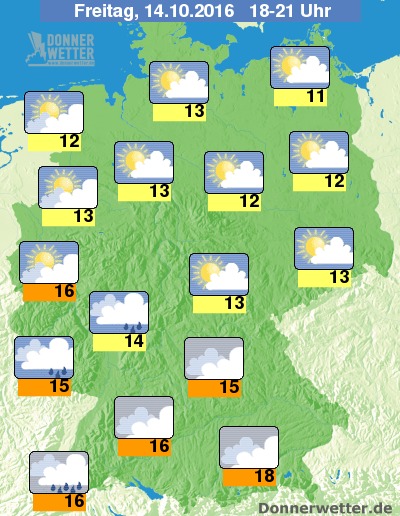 Heute Abend halten sich über der Südwesthälfte weitgehend dichte Wolken aus denen hier und da auch etwas Regen fallen kann. Über dem Norden und Osten der Republik ist es oft aufgelockert, teils auch nur locker bewölkt und es bleibt trocken. Die Temperatur liegt bei 11 bis 18 Grad.