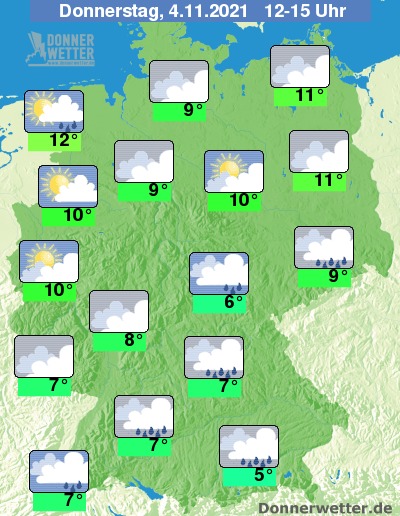 Heute Nachmittag bleibt es über der Südosthälfte des Landes bedeckt und es fällt zeitweise Regen. Im übrigen Bundesgebiet ist es meist stark bewölkt, dabei bilden sich nur vereinzelt Schauer. Teils heitere Abschnitte zeigen sich vom Nordseeumfeld bis zum Münsterland. Die Temperatur liegt bei 5 Grad in Berchtesgaden und bis 12 Grad an der Nordsee.