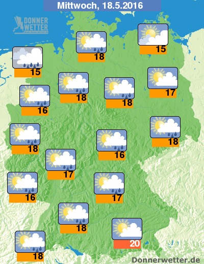 Ab Mittwoch, bis Freitag ziehen von Westen her Tiefausläufer durch. Bei zeitweise feuchtem, im Norden auch nassem Wetter ist es mit 15-18 Grad C milder als bisher.