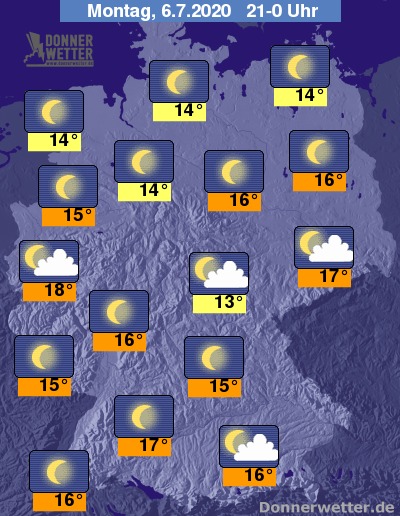 Im weiteren Abendverlauf klart der Himmel dann vielerorts auf, selten ist es auch mal locker bewölkt. Dabei bleibt es meist trocken.
