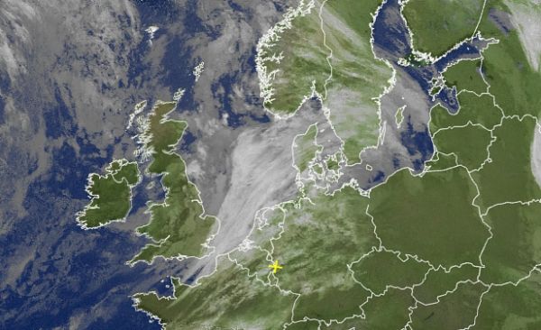 Ein Tiefdruckgebiet (Wolken sind auf unserem Satellitenbild schon über der Nordsee zu sehen) wird wetterbestimmend. Mehr Satellitenbilder sind hier zu finden.