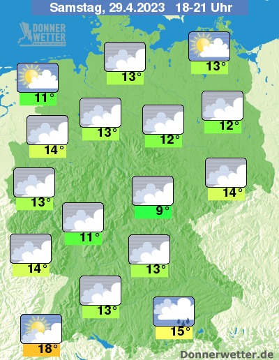 Am Sonntag bleibt es im Süden und über Sachsen noch oft stark bewölkt. Im übrigen Bundesgebiet wird es jedoch verbreitet heiter bis sonnig. Es bleibt überall trocken bei 10 Grad auf Rügen und bis 20 Grad im Rheinland.