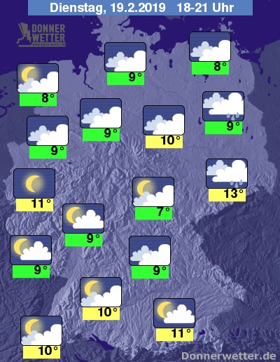 Bis Mitternacht klart der Himmel auch im Osten zum Teil auf und die Temperaturen gehen leicht zurück.