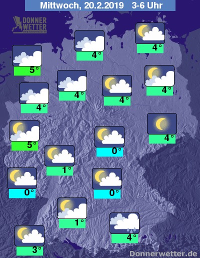 Während der zweiten Nachthälfte trübt sich der Himmel im Nordwesten neuerlich ein. Sonst ist es teils klar, teils bewölkt. Regen fällt nur in Teilen Bayerns etwas.