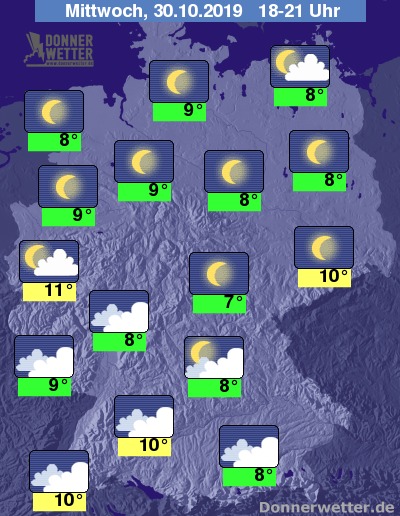 Am Abend präsentiert sich der Himmel im Norden und Osten oft sternenklar, im Süden und Südwesten halten sich dichtere Wolkenfelder. An den Alpen kann es noch stellenweise nass werden.