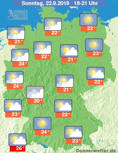Heute Abend ist es besonders im Osten und Nordosten noch verbreitet sonnig, sonst ziehen auch über die Nordosthälfte häufiger einige Wolkenfelder hinweg. Im Westen und Süden zeigen sich teils heitere Abschnitte, gebietsweise ziehen aber auch dichte Wolken durch. Westlich des Rheins sind vereinzelte Schauer möglich, ansonsten bleibt es aber weitgehend trocken. Die Temperatur liegt anfangs noch bei rund 20 Grad am Taunus und bis zu 26 Grad in Freiburg.