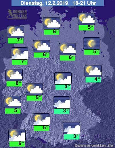 Am Abend präsentiert sich der Himmel wechselnd bewölkt bis klar. Über Bayern sind die Wolken noch zäher, Schnee oder Regen fällt jedoch kaum noch.
