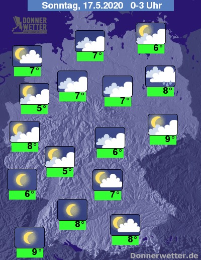 In der Nacht zeigt sich der Himmel, ausgenommen den Süden, zunächst noch häufig stark bewölkt oder bedeckt, an der Spree können zudem einzelne Schauer fallen. In den frühen Morgenstunden lockern die Wolken in der Nordhälfte dann zunehmend auf, im Verlauf kann sich regional Nebel bilden. Kompaktere Wolken halten sich dann meist nur noch östlich der Elbe.