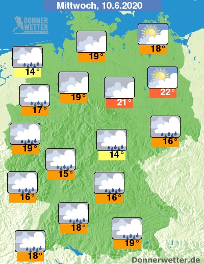 Die Höchsttemperaturen liegen zwischen 14 und 23 Grad, am wärmsten wird es dabei noch in und rund um Berlin.