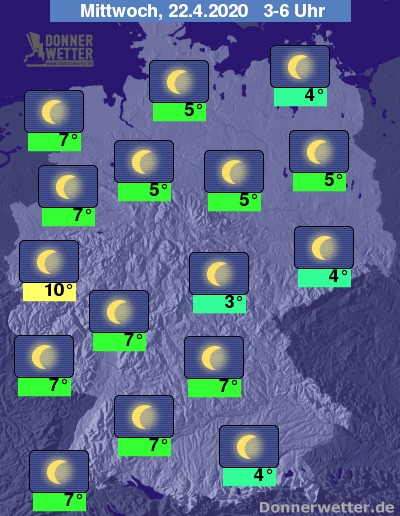 Bis zu den Frühstunden kühlt die Luft auf 3 bis 10 Grad ab. In windgeschützten Mittelgebirgstälern muss mit Bodenfrösten gerechnet werden. Am mildesten bleibt es in den größeren Städten von NRW.