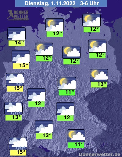 In der Nacht zum Dienstag lockert der Himmel zunächst häufig auf, wobei im Südwesten schon meist dichte Wolken durchziehen, dazu ist es noch trocken. Im weiteren Verlauf nimmt die Bewölkung von Westen her weiter zu und im Westen und Südwesten ist gebietsweise Regen möglich, sonst bleibt es trocken. Die Temperatur sinkt auf 15 Grad in Bonn und 11 Grad in Augsburg.