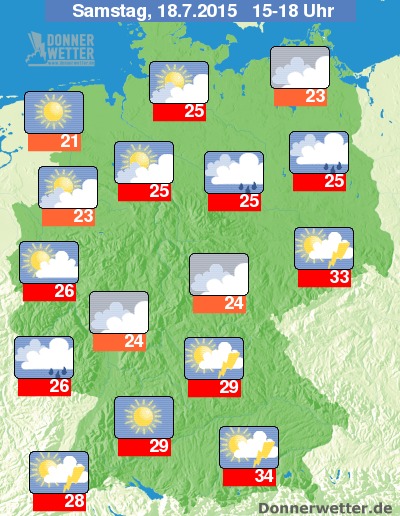 Heute Nachmittag zeigen sich besonders im Norden und Westen neben einigen Wolken oft auch heitere Abschnitte und es bleibt hier trocken. Über die Südosthälfte des Landes ziehen jedoch gebietsweise dichte Quellwolken und es sind dabei teils kräftige Schauer und regional schwere Gewitter möglich. Die Temperatur steigt auf 21 Grad an der Nordseeküste und bis auf schwülheiße 34 Grad in München.