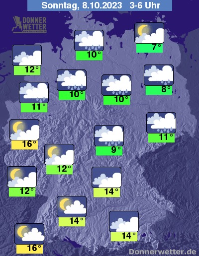 In der bevorstehenden Nacht ziehen dichte Regenwolken vom Norden bis etwa in die Mitte des Landes und in den Osten. Im Süden und Westen ist es noch oft locker, teils auch schon stark bewölkt, aber weitgehend trocken. Die Temperatur sinkt auf 16 Grad in Köln und 7 Grad in Rostock.