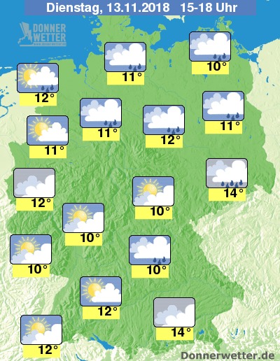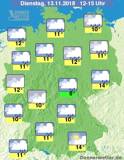 Die Temperaturen liegen meist zwischen 9 und 14 Grad. In der Lausitz, sowie am Inn können örtlich auch 15 Grad überschritten werden.