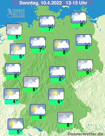 Heute Abend kann sich mehr und mehr die Sonne durchsetzen. Letzte Schauer mit Schnee oder Graupel bilden sich noch von Thüringen bis nach Sachsen, sonst bleibt es bei meist lockerer bis wechselnder Bewölkung trocken. Die Temperatur liegt bei 2 Grad in Jena und bis 8 Grad in Bonn.