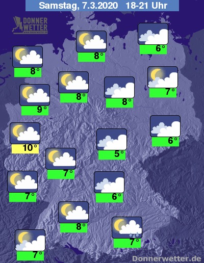 Heute Abend klingt der Regen auch im Süden und Osten weitgehend ab und es lockert auch hier immer mehr auf. In den übrigen Landesteilen ist es überwiegend gering bis wechselnd bewölkt und dazu trocken. Die Temperatur liegt bei 5 bis maximal 10 Grad C.