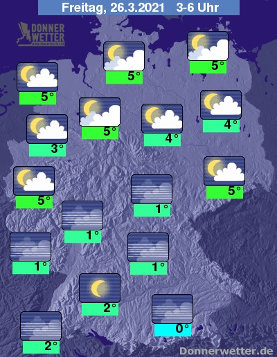 In der kommenden Nacht klingen letzte Schauer im Süden und Osten rasch ab und es lockert verbreitet auf. Besonders über der Südhälfte wird es überwiegend sogar sternenklar, im übrigen Land ist es locker bis aufgelockert bewölkt. Es bleibt trocken bei Tiefstwerten von 5 Grad in Hamburg und um 0 Grad in München.