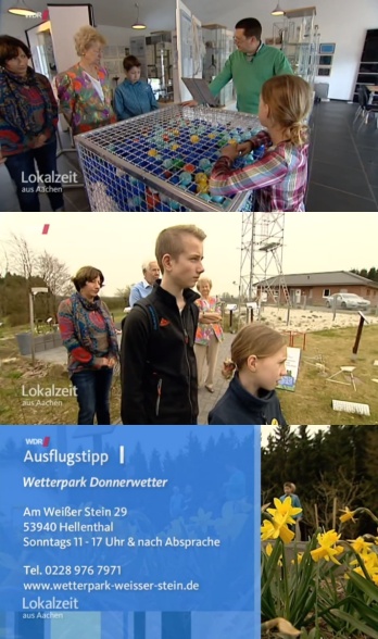In gleich drei Ausgaben der Lokalzeit wurde am Samstag Abend unser Donnerwetter.de-Wetterpark auf dem Weißen Stein vorgestellt. In der WDR-Mediathek kann man den Beitrag noch einmal sehen: Beitrag in der WDR-Mediathek