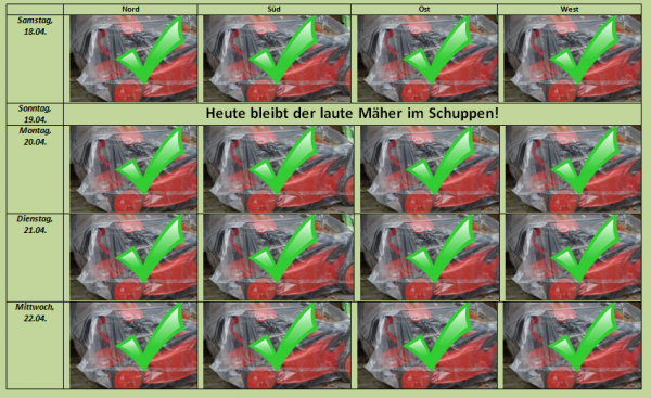 Grasgrün zeigt sich die Tabelle unseres heutigen Rasenmäher-Wetters.
