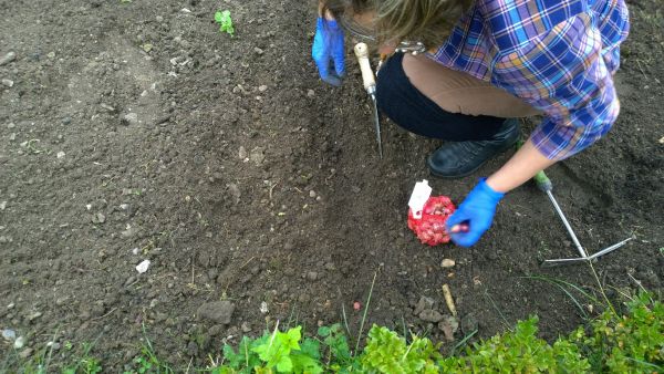 Haltet bei der Pflanzung der Steckzwiebeln einen Reihenabstand von etwa 20 cm ein. Zwischen den einzelnen Zwiebeln solltet Ihr etwa 5 bis 10 cm Platz lassen.