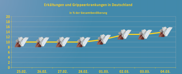 Zeitgleich zu den zahlreichen Karnevalsumzügen steigt in dieser Session aber leider auch die Gefahr, sich eine Grippe oder zumindest Erkältung einzufangen. Verursacht wird der Anstieg durch das Einfließen kälterer Luft an den Tagen um den Monatswechsel.