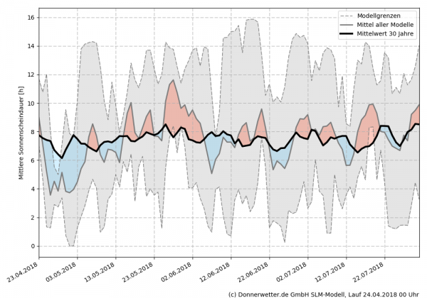 Unsere aktuellen Langfristprognosen für Lufttemperatur, Sonnenscheindauer und Niederschlagshöhe.