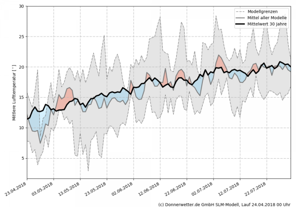 Nachdem sich die Temperaturen in den kommenden beiden Wochen unter dem langjährigen Mittel bewegen, steigen sie in der ersten Maihälfte wieder über den Normalwert. Ist zwar häüfig zu trocken, Sonne bleibt vorerst aber Mangelware.