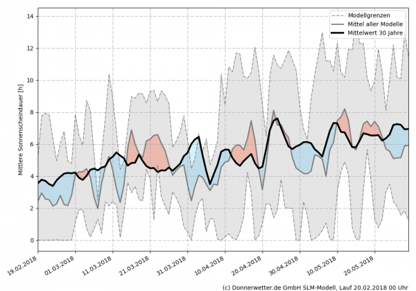 Unsere aktuellen Langfristprognosen für Lufttemperatur, Sonnenscheindauer und Niederschlagshöhe.