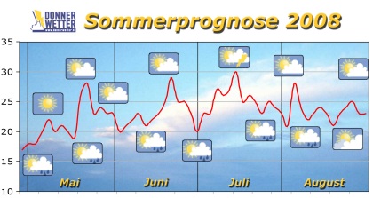 Der Sommer 2008 startet stark durch, um dann stark nachzulassen. Wir rechnen mit einem sommerlichen Mai und Juni und wechselhafterem Wetter im Juli und August.