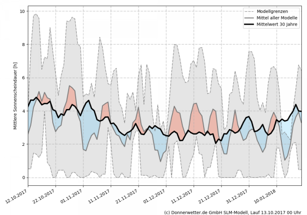Die durchschnittliche Sonnenscheindauer sieht im Süden dagegen sehr viel freundlicher aus als im Osten Deutschlands. Laut Prognosen machen die Sonnenstunden im Süden nochmal einen Schlenker nach oben von 4 auf 5 Stunden im Durchschnitt und im Osten sinken sie von 4 auf 2 Stunden im November ab.