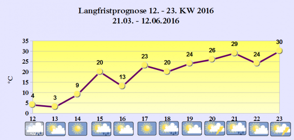 Frühlingshafte Temperaturen um 20 °C sind dann erst wieder im April zu erwarten.