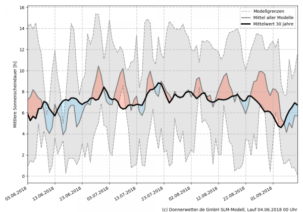 Unsere aktuellen Langfristprognosen für Lufttemperatur, Sonnenscheindauer und Niederschlagshöhe.