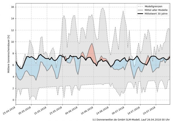 Unsere aktuellen Langfristprognosen für Lufttemperatur, Sonnenscheindauer und Niederschlagshöhe.