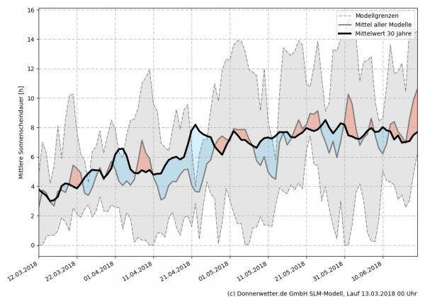 Unsere aktuellen Langfristprognosen für Lufttemperatur, Sonnenscheindauer und Niederschlagshöhe.