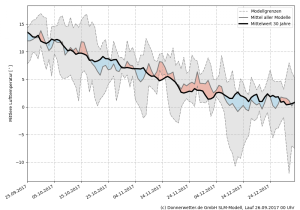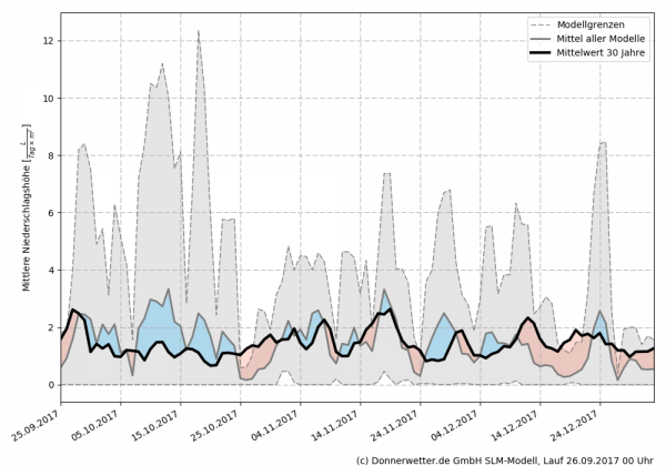 Wie unsere Modelle den Wetterverlauf für den Ostteil des Landes bis Mitte Dezember aktuell berechnen, sehen Sie in den drei Grafiken.