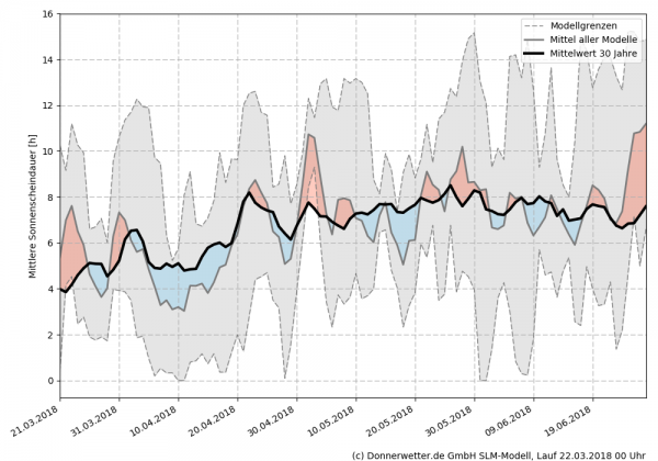 Unsere aktuellen Langfristprognosen für Lufttemperatur, Sonnenscheindauer und Niederschlagshöhe