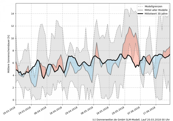 Unsere aktuellen Langfristprognosen für Lufttemperatur, Sonnenscheindauer und Niederschlagshöhe