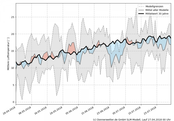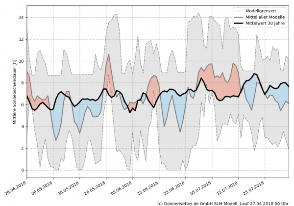 Unsere aktuellen Langfristprognosen für Lufttemperatur, Sonnenscheindauer und Niederschlagshöhe.