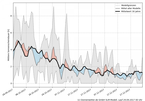 Die norddeutschen mittleren Lufttemperaturen der kommenden Wochen halten sich zumeist die Waage - mal liegen sie leicht über, mal leicht unter dem 30-Jahres-Durchschnitt. Ähnlich sieht es mit der Sonnenscheindauer aus. Bei den Niederschlagssummen zeichnet sich bis Ende November ein eher negativer Trend ab, die Chance auf den ein oder anderen goldenen Herbsttag besteht also auch im wetterlaunischen Norden noch.