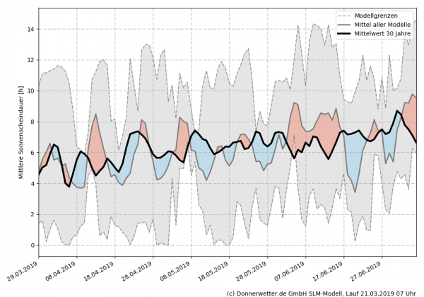 Unsere aktuellen Langfristprognosen für Lufttemperatur, Sonnenscheindauer und Niederschlagshöhe.