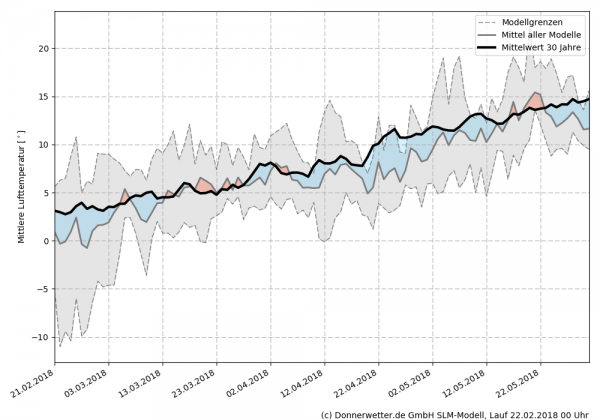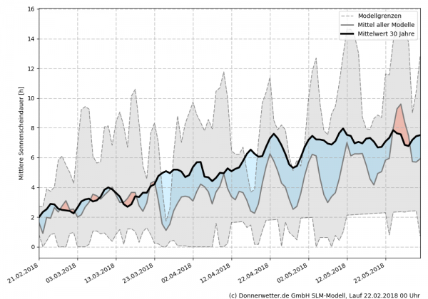 Unsere aktuellen Langfristprognosen für Lufttemperatur, Sonnenscheindauer und Niederschlagshöhe.