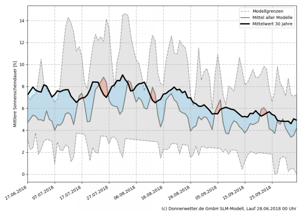 Unsere aktuellen Langfristprognosen für Lufttemperatur, Sonnenscheindauer und Niederschlagshöhe.