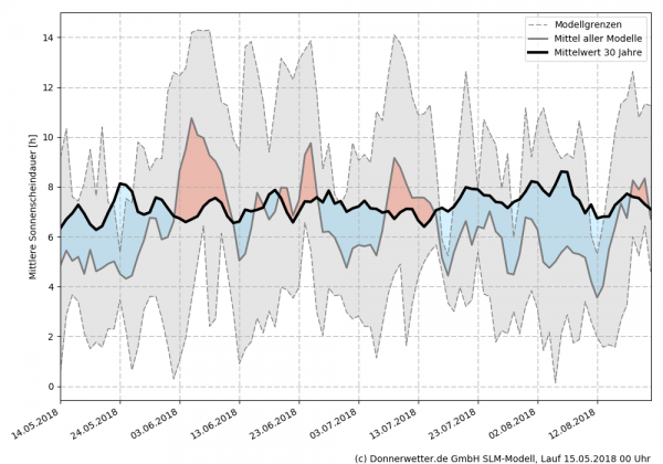 Unsere aktuellen Langfristprognosen für Lufttemperatur, Sonnenscheindauer und Niederschlagshöhe.